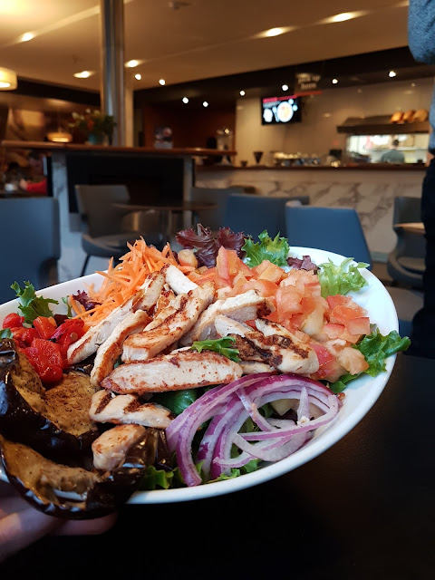 The Warm Grilled Chicken Salad will now be available with roasted garlic, eggplant and roasted red pepper. The price has pretty much stayed the same which is incredible considering how many things have been added. As much as I love the original salad, I have to admit that the new additions give it that little extra "umph".